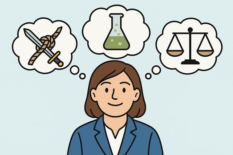 - Een derde type vraagstuk is dat waarbij niet duidelijk is wat de goede richting is. Er lijkt een keuze tussen twee opties die beide aantrekkelijk zijn maar niet samengaan. Of geen van beide lijkt wenselijk, maar er moet toch een keuze gemaakt worden. De echte dilemma’s.