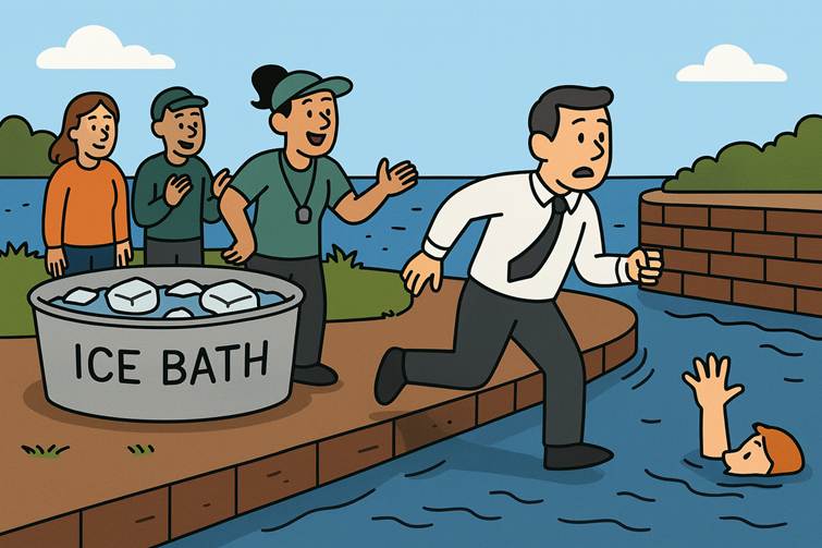 “Moed als leider laat je niet zien door als eerste in een ijsbad te stappen”